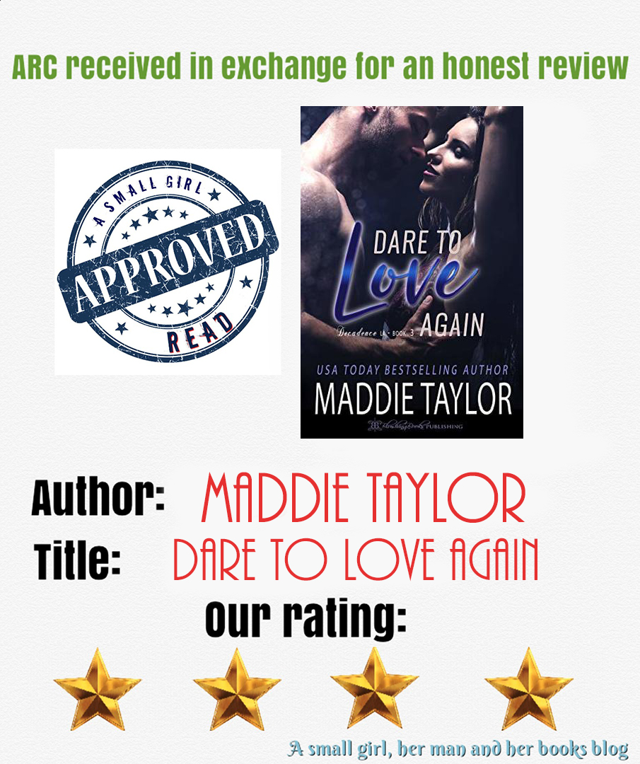 It's very difficult to rate and review this book. First, let's get the nitty and gritty out of the way: this is my first book by this author. Until i received the invitation to read and review Maddie Taylor's Dare To Love Again, i hadn't heard of her or her books, so the blurb absolutely drew me in because of not only the subject and the genre, but because of the way it was written. And plus, i'll admit it, the cover was absolutely pretty and everything.
