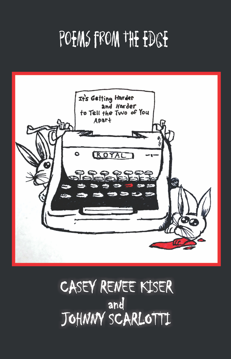 “It’s Getting Harder and Harder to Tell the Two of You Apart” is a perfect title for this little gem of a poetry book – not only because Scarlotti and Kiser’s poems meld into each other with the utmost ease, but also because the idea of the split personality is present in both of their works. Additionally, I think Scarlotti’s poetry uses fiction to exaggerate and cover up truths, whereas Kiser’s poetry is truth, which she knows is just fiction. This blend creates a powerful volume of verse. Another reason these poets go together so well is because Johnny’s poems tend to work best as whole poems, rather than lines and couplets sticking in one’s mind, whereas, although Casey Renee’s poems are good as whole poems, it’s her one-liners that really stick out. Such as: