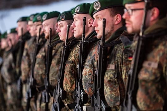 (Soldiers of armored infantry battalion Panzergrenadierbataillon 122 of the Bundeswehr, the German armed forces, attend a ceremony to mark their pending deployment to Lithuania on 19 January, 2017 in Oberviechtach, Germany Johannes Simon/Getty Images)