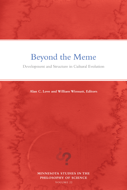 How do cultures change? In recent decades, the concept of the meme, posited as a basic unit of culture analogous to the gene, has been central to debates about cultural transformation. Despite the appeal of meme theory, its simplification of complex interactions and other inadequacies as an explanatory framework raise more questions about cultural evolution than it answers. In Beyond the Meme , William C. Wimsatt and Alan C. Love assemble interdisciplinary perspectives on cultural evolution, providing a nuanced understanding of it as a process in which dynamic structures interact on different scales of size and time. By focusing on the full range of evolutionary processes across distinct contexts, from rice farming to scientific reasoning, this volume demonstrates how a thick understanding of change in culture emerges from multiple disciplinary vantage points, each of which is required to understand cultural evolution in all its complexity. The editors provide an extensive introductory essay to contextualize the volume, and Wimsatt contributes a separate chapter that systematically organizes the conceptual geography of cultural processes and phenomena. Any adequate account of the transmission, elaboration, and evolution of culture must, this volume argues, recognize the central roles that cognitive and social development play in cultural change and the complex interplay of technological, organizational, and institutional structures needed to enable and coordinate these processes. Marshall Abrams, U of Alabama at Birmingham; Claes Andersson, Chalmers U of Technology; Mark A. Bedau, Reed College; James A. Evans, U of Chicago; Jacob G. Foster, U of California, Los Angeles; Michel Janssen, U of Minnesota; Sabina Leonelli, U of Exeter; Massimo Maiocchi, U of Chicago; Joseph D. Martin, U of Cambridge; Salikoko S. Mufwene, U of Chicago; Nancy J. Nersessian, Georgia Institute of Technology and Harvard U; Paul E. Smaldino, U of California, Merced; Anton Törnberg, U of Gothenburg; Petter Törnberg, U of Amsterdam; Gilbert B. Tostevin, U of Minnesota.