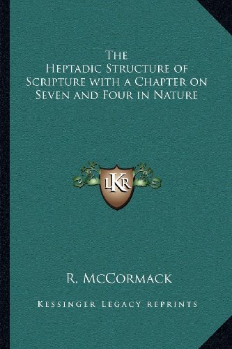 ""The Heptadic Structure of Scripture with a Chapter on Seven and Four in Nature"" by R. McCormack is a comprehensive exploration of the biblical concept of heptadic structure, or the use of the number seven as a symbolic representation of completeness and perfection. The book delves into the significance of the number seven in various areas of the Bible, including the creation account, the Ten Commandments, and the Book of Revelation. Additionally, the author includes a chapter on the related concept of the number four in nature, examining its significance in the four seasons, elements, and directions. This book is ideal for scholars, theologians, and anyone interested in the deeper meanings and symbolism of the Bible.1923. The author's position is that as the feathers in the wings of a bird are all numbered; as the leaves of a plant are all numbered; as the rows of grain on a cob of maize are all numbered; as the atoms in a molecule of every chemical compound are all numbered; so the words and even the letters in the true text of Scripture are numbered. The Number Seven in the Bible and The Principle Outlined; Textual Criticism; Canon of Scripture; Translation; Interpretation; Chronology; Numbers Seven and Four In Nature; Heptadic Occurrence of Words and Phrases; Heptadic Division; The Inspiration of the Bible.This scarce antiquarian book is a facsimile reprint of the old original and may contain some imperfections such as library marks and notations. Because we believe this work is culturally important, we have made it available as part of our commitment for protecting, preserving, and promoting the world's literature in affordable, high quality, modern editions, that are true to their original work.