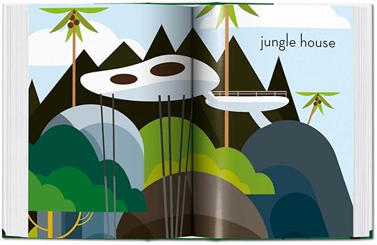 This book is a large, well-photographed, appealing compendium of about 50 (mostly) luxurious and exclusive arboreal marvels located around the world, highlighting the structures of established treehouse architects along with a smattering of amateur—though not amateurish—endeavors. Some are available for lodging or dining (!), some are on private property (so you'll have to make friends with people like Val Kilmer or The Doors' guitarist Robby Krieger to actually climb inside), and some are conceptual. My initial interest in this book was with the illustrator Patrick Hruby, whom I recently discovered and whose work here perfectly matches the childlike and enchanting aesthetic I associate with treehouses. But most of these "castles in the air" are unquestionably for adults with adult expectations, and many of them, while fascinating to consider the structural logistics (Sweden's "Mirrorcube Tree Hotel" for example, which looks like a glass cube floating among the trees, the effect of which at dusk practically causes it to vanish), finally did not connect with me because of this. Including some less extravagant examples would’ve provided some balance, in my opinion.