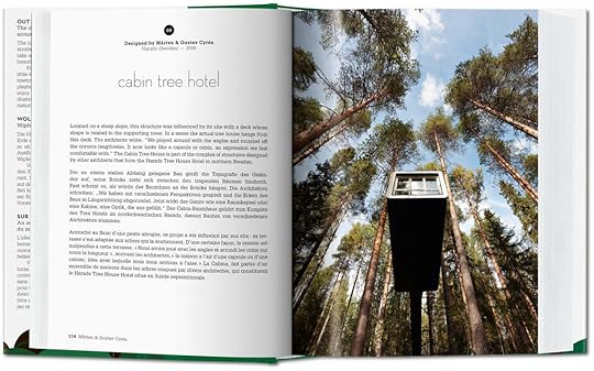 Really cool concept, showing off tree houses from all over the globe. I wish there were more pictures of some of the trees houses, though perhaps photography of their interiors is restricted for one reason or another. I also wish there was more written about each tree house - the inspiration, obstacles encountered, etc. - however since it is written in 3 languages, this book would've ended up being quite enormous so I understand why the written content is a bit lacking.