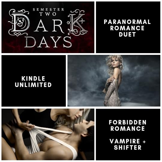 ~QD BOOK INFO~ Kindle Unlimited: Yes Audible: No Series: Yes - Duet 1. Dark Days - Semester 1: released 12/6/18 2. Dark Days - Semester 2: releasing 2/8/19