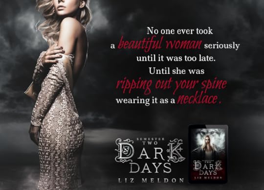 Dark Days Semester 2 by Liz Meldon is not only a paranormal romance but also about making up for your past and finding the grace and peace you have been searching for in the chaos of the day. A very well written book with wonderful characters that are fighting for not only their lives but the lives of others.