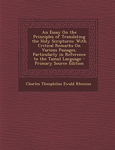 An Essay On the Principles of Translating the Holy Scriptures: With Critical Remarks On Various Passages, Particularly in Reference to the Tamul Language