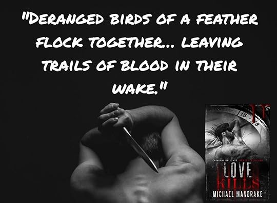 Deranged Birds... the first two words in the blurb say it all. Love Kills is one of those stories that will mess with your head. Two of the characters especially are messed up- one more than the other.