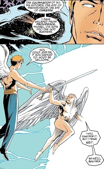 I'm so conflicted over this story - I've enjoyed others of Carey's works (Hellblazer, X-Men Legacy) and I've appreciated his approach to exploring characters. For some reason, here I'm dying for him to really let Lucifer loose and he's doing everything in his power to use Lucifer's abilities as little as possible. It's supremely frustrating to me, and while I can see what he's doing from a craftsmanship point of view, it's not really any easier for me as a reader to enjoy him dragging this out and torturing me. Perhaps if Carey took the Heaven-versus-Lucifer battle off the table permanently, it would be easier to enjoy the meandering journey this is taking.