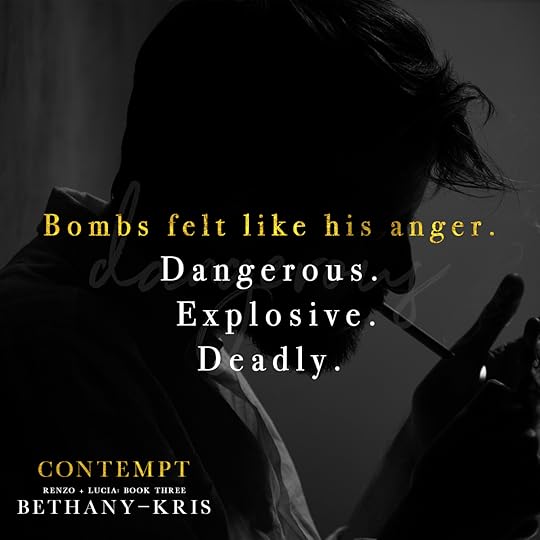 "He loved this woman. Loved her messy. Loved her crazy. Loved her best."Overall, Mafia Romance Fans will not want to miss the Renzo and Lucia Series. Each book in the series is full of non-stop action, tender romance, and fiery passion. Contempt is an absolute must-read! I have become a true Bethany-Kris convert and highly recommend her work to anyone who enjoys a ruthless alpha paired with a spunky heroine! I look forward to more Bethany-Kris greatness to come!
