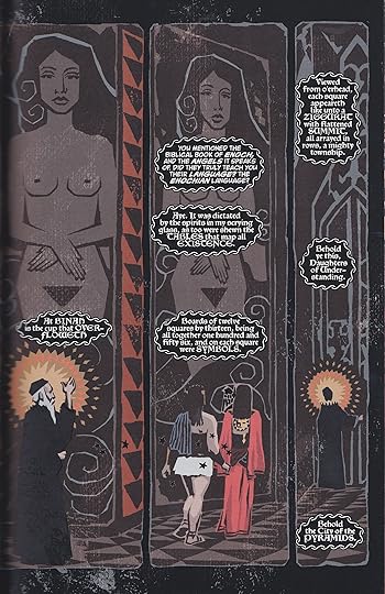 The amazing visuals are compromised by the absolute info dump on every page as Moore explains the visuals already presented on the page.