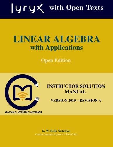 After being traditionally published for many years, this formidable text by W. Keith Nicholson is now being released as an open educational resource and part of Lyryx with Open Texts! Supporting today’s students and instructors requires much more than a textbook, which is why Dr. Nicholson opted to work with Lyryx Learning.Overall, the aim of the text is to achieve a balance among computational skills, theory, and applications of linear algebra. It is a relatively advanced introduction to the ideas and techniques of linear algebra targeted for science and engineering students who need to understand not only how to use these methods but also gain insight into why they work.
