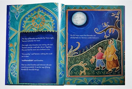 This book is about Yasmeen, a seven-year-old Pakistani-American girl, who is celebrating the Muslim holidays of Ramadan, The Night of the Moon (Chaand Raat), and Eid.