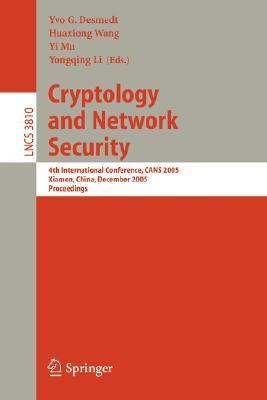 The 4th International Conference on Cryptology and Network Security (CANS 2005) was held in Xiamen, Fujian Province, China, December 14-16, 2005. The conference was sponsored by the Fujian Normal University and Fujian Digital Certi?cate Authority Co. Ltd and was organized in cooperation with the Int- national Association for Cryptologic Research (IACR). The ?rst International Workshop on Cryptology and Network Security was in Taipei, Taiwan, 2001. The second one was in San Francisco, California, USA, September 26-28, 2002, and the third in Miami, Florida, USA, September 24-26, 2003. CANS 2005 was the ?rst CANS with proceedings published in the Lecture Notes in Computer Science series by Springer. The Program Committee received 118 submissions, and accepted 28 papers from which 1 withdrew and thus 27 papers were included in the proceedings. The reviewing process took eight weeks, each paper was carefully evaluated by at least three members from the Program Committee. We appreciate the hard work of the members of the ProgramCommittee and external referees who gave manyhoursoftheir valuabletime.Thanksto CarlEllison, GoceJakimoski, Bart Preneel, Yongge Wang, Christopher Wolf and Shouhuai Xu, who acted as the shepherds of 6 papers included in the proceedings. In addition to the contributed papers, there were two invited talks: Wenbo Mao spoke on "Research Issues in Network Security" - a practical viewpoint; and Matt Franklin on "Research Issues in Network Security" - a foundations viewpoint.