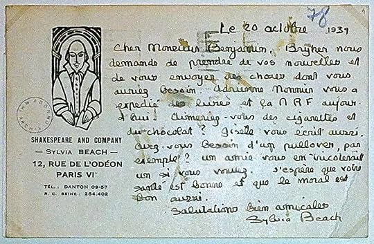 Who didn't enter that shop? Hemingway did as did Fitzgerald, DosPassos, Faulkner, Stein, Joyce (constantly), Beckett, Gide, Valery, and on and on. Elizabeth Bishop stopped at the door, unable to bring herself to enter. Bryher, H.D., Pound, Ford. Satie, Antheil, Virgil Thompson, and Aaron Copland... the list goes on. There were musicians, artists but overwhelmingly writers.And Sylvia introduced American and English authors to the French through her shop/lending library.