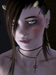 One of the main characters of this world is the planet of Gorth. Gorthians are humanoid but not human. They have blue hair in short curls (turning black with age, and only on their heads), six fingers, ivory skin, and they're only about half the size of Earth humans. Yet they're interfertile with Earth humans. Go figure.