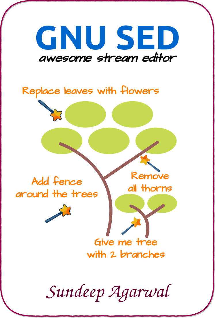 The book heavily leans on examples to present features of sed as well as regular expressions one by one. It is recommended that you manually type each example and experiment with them. Understanding both the nature of sample input string and the output produced is essential.