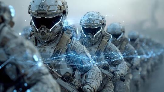 Super Screen - "Wilson checks his helmet screen, which shows a digital animation of their progress, little brown figures knee-deep in yellow flowers. He can control the screen to give him whatever angle he wants, even close-ups of the helmets that reveal the expression any soldier is wearing at a particular moment, stamped on features that are individualized but rendered like cartoon superheroes." Seeing oneself and others as cartoon superheroes? Is all this healthy in any way? Sure, it might serve the immediate cause, but what does it say about the depth and breadth of our humanity?