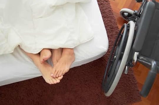 NSFW infos: - guy in wheelchair since car accident at 16, virgin, long wavy dark hair and a beard, now 26 - twinkish hairdresser, 23 - both out and gay - strict top/bottom dynamic -