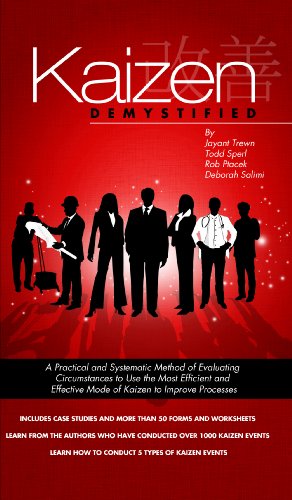 We are pleased to present Kaizen Demystified, perfectly timed for today s ever-changing and ever-demanding business environment requiring improved processes. Whether your industry is manufacturing, healthcare, financial, education, armed forces, services, government, or the construction industry, or, you are a manager, supervisor, team leader, or a front-line worker, this book will provide new insights and ideas for managing and facilitating continuous improvement and problem solving projects (i.e., Kaizen Events). Kaizen Demystified provides a simple and practical approach detailing five distinct methods on how Lean (and Six Sigma) tools and concepts can quickly and efficiently be applied and managed to solve business problems and improve processes. The five types of Kaizen Events detailed in this book are (1) Standard 5 Day Kaizen Event, also referred to as a Kaizen Blitz or Rapid Improvement Event, (2) Rolling Kaizen Event, (3) Web Based Kaizen Event, (4) Today's Kaizen Event, and (5) Wiki (or Quick) Kaizen Event. Each type will be thoroughly explained to demystify what it may mean for you. This book also includes a section (chapter) on Kaizen Event Leadership and provides a listing of common issues facing the leader of a Kaizen Event as well as suggested how-to leadership skills to address those issues. (This being one of the most important aspects of Kaizen Events.) Kaizen Demystified will certainly support, supplement, and/or enhance your current Kaizen or Lean thinking and, most importantly, the doing and sustaining. In the end, there will be no mystery!