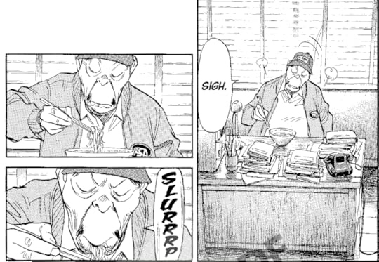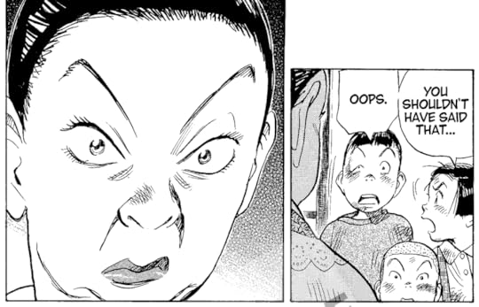 I don't understand the importance of Shota’s or Asa's friend’s storyline in the big scheme of things at the moment. Perhaps it never will be? At the very least, it allows to create breathers in Asa's storyline and even to provide a bit of humour. Also, a great performance from Kinuyo as the big-hearted matron. Urasawa's semi-caricatural style works wonders with characters of this calibre.