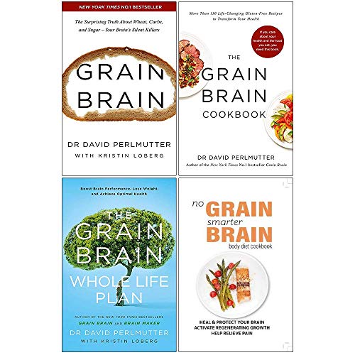 Grain Brain, Grain Brain Cookbook, Grain Brain Whole Life Plan, No Grain Smarter Brain Body Diet Cookbook 4 Books Collection Set Grain The Surprising Truth about Wheat, Carbs, and Sugar - Your Brain's Silent Killers Dr Perlmutter explains what happens when the brain encounters common ingredients in your daily bread and fruit bowls, why your brain thrives on fat and cholesterol, and how you can spur the growth of new brain cells at any age. He offers an in-depth look at how we can take control of our 'smart genes' through specific dietary choices and lifestyle habits, demonstrating how to remedy our most feared maladies without drugs. Grain Brain More Than 150 Life-Changing Gluten-Free Recipes to Transform Your Health THE GRAIN BRAIN COOKBOOK presents more than 150 delectable recipes that keep your brain vibrant and sharp while dramatically reducing your risk for debilitating neurological diseases as well as relieving more common, everyday conditions. The Grain Brain Whole Life Boost Brain Performance, Lose Weight, and Achieve Optimal Health Now, Dr. Perlmutter has written the definitive, highly practical lifestyle guide offering readers a step-by-step plan to lower the risk of brain ailments while yielding other benefits, such as weight loss, relief from chronic conditions, and total body rejuvenation. Accessible and science-based, The Grain Brain Whole Life Plan provides readers with actionable information, including all the core nutritional advice they know and love from Grain Brain. No Grain, Smarter Brain Body Diet Heal & Protect Your Brain. Activate Regenerating Growth. Help Relieve Pain By reducing inflammation in the brain, through removing harmful foods from our diet, we can reduce the instances of degenerative brain disorders. The most common foods that are harmful to our brains and cause inflammation are gluten (a protein found in wheat, barley and rye) and foods which are high in carbohydrates.