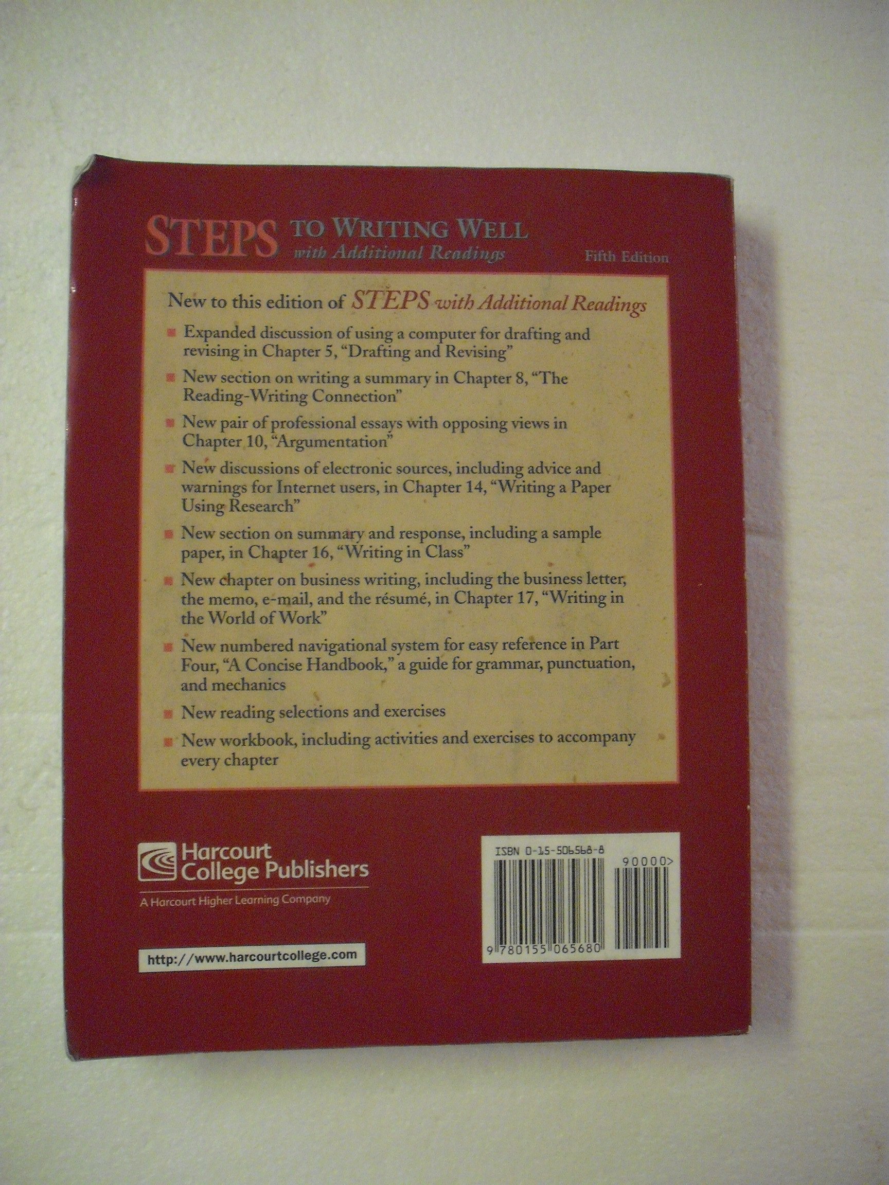 This is one of the English textbooks my composition class requires. So far this well written book has been a great instructional device to help become a better writer.