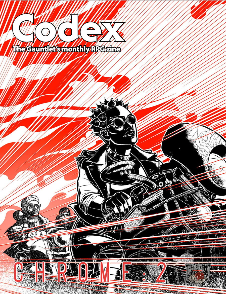 Codex is the monthly RPG fanzine published by the Gauntlet gaming community! Each issue features a variety of articles organized around a theme, loads of original artwork, and a custom layout.