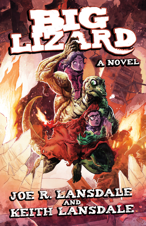 Did I mention the giant, homicidal chicken? There’s a giant, homicidal chicken, who turns out to be Big Lizard’s nemesis. Because, what Big Lizard also is, is a super hero origin story, and every super hero needs a nemesis. The Lansdale team delivers in every way here. Big Lizard is laugh-out-loud funny, profane, and brimming with cartoony violence. It’s also brimming with startlingly original language. Both men have a gift for describing what should be indescribable.