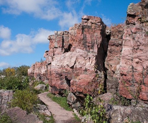 This Pipestone National Monument, where the stone for the pipe bowls was quarried. This stone is also called "Catlinite" after George Catlin, a painter and writer who was one of the first white travelers to visit the quarry. The pipe stems are wood and are traditionally decorated with beaver fur, mallard feathers, and four ribbons of black or blue, red, white, and yellow. The pipes themselves are important as ritual items and have uses aside from smoking.