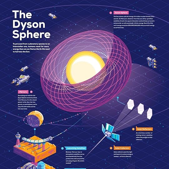 p 150 Dyson sphere "It would be logical development for a high civilization to have disassembled one of its larger planets in order to build an energy-capturing shell around its sun. We are wasting our time searching near visible stars. We should look instead for dark, room-temperature objects about the size of Earth's orbit which radiate as intensely as the star hidden inside, but radiate in the far-infrared."