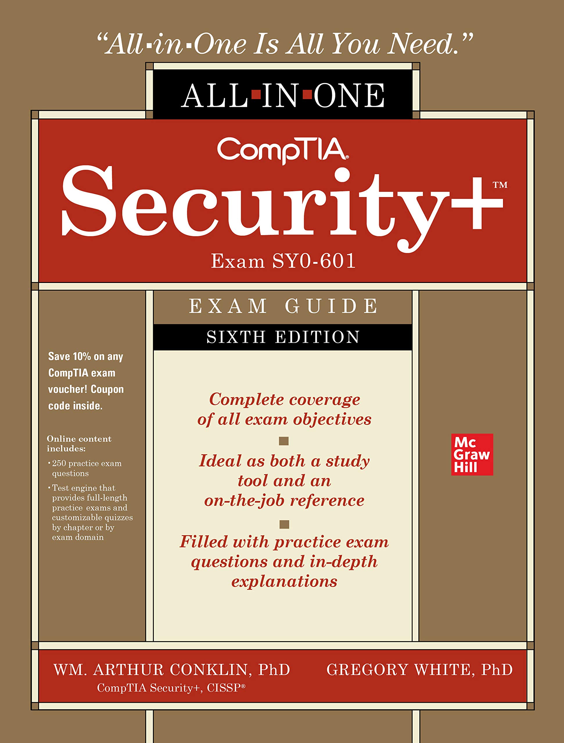 Get complete coverage of all objectives included on the CompTIA Security+ exam SY0-601 from this comprehensive resource. Written by a team of leading information security experts, this authoritative guide fully addresses the skills required to perform essential security functions and to secure hardware, systems, and software. You'll find learning objectives at the beginning of each chapter, exam tips, practice exam questions, and in-depth explanations. Designed to help you pass the exam with ease, this definitive volume also serves as an essential on-the-job reference.