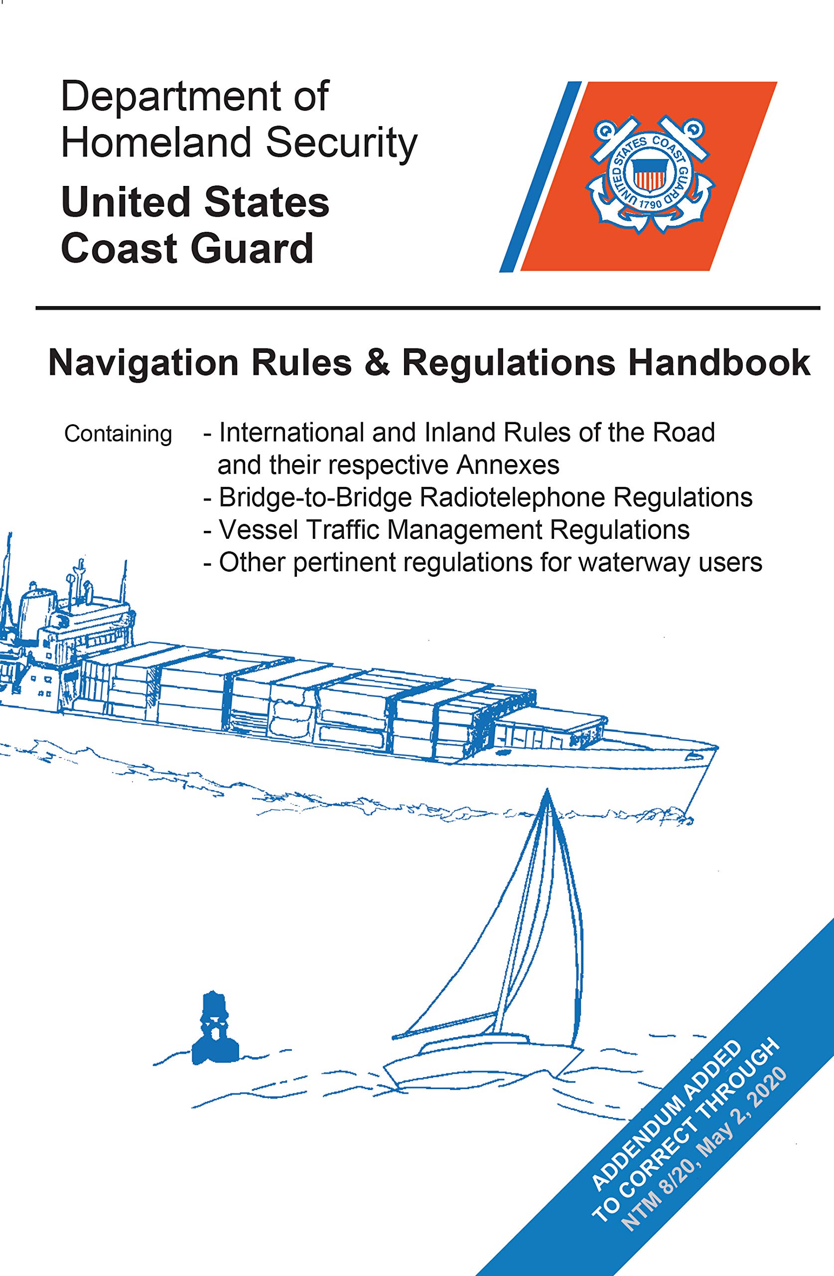 The Navigation Rules & Regulations Handbook (Nav Rules) contains the essentials of boating protocol and safety. It is the reference manual every boat should carry and every skipper should be intimately familiar with. So valuable in fact the US Coast Guard REQUIRES a copy on board all vessels 12 meters (approximately 39') or more in 34;33 CFR 83.01(g) 'The operator of each self-propelled vessel 12 meters or more in length shall carry, on board and maintain for ready reference, a copy of these Rules.' This handbook is a compendium produced by the U.S. Coast Guard Navigation Standards Branch, U.S. Coast Guard Headquarters, Washington, DC, of International Regulations for Preventing Collisions at Sea, 1972 (72 COLREGS); Inland Navigation Rules (33 CFR 83); their respective technical annexes (33 CFR 84-90); COLREGS Demarcation Lines (33 CFR 80); Vessel Bridge-to-Bridge Radiotelephone Regulations, (33 CFR 26); Vessel Traffic Management Regulations (33 CFR 161); and, various other pertinent provisions of the U.S. Code and Code of Federal Regulations regarding compliance and penalties associated with the Navigation Rules.
