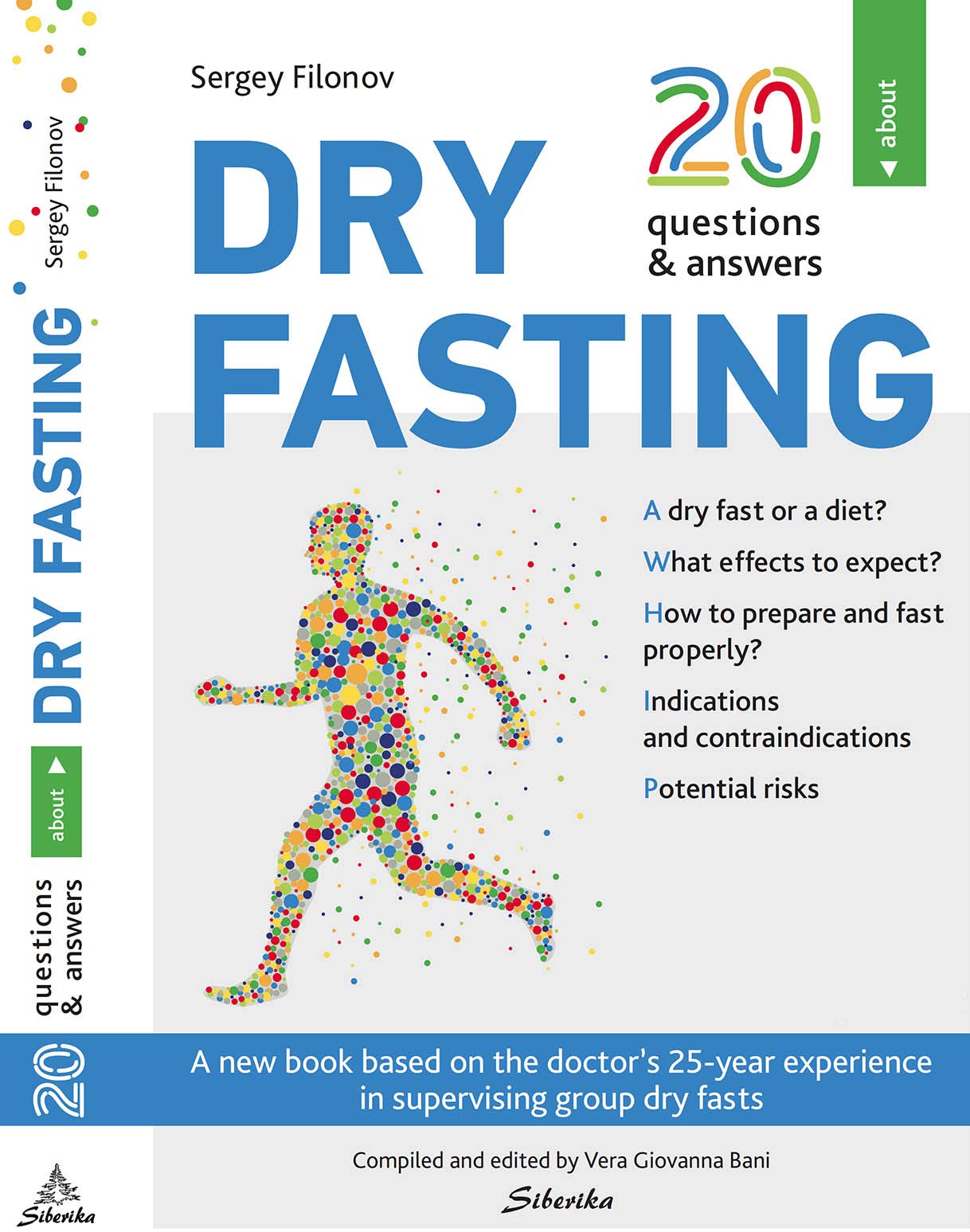 Therapeutic fasting is not simply abstinence from food. There are rules of comfortable and effective fasting, just as there are rules of healthy eating. If you are aware of these rules, you won’t feel lost if you experience nausea or headaches during fasting. You’ll have no doubts as to when and where to utilize enemas for intestinal cleansing.You’ll be able to figure out whether fasting is contraindicated in your case, and when you start, you’ll know when to break the fast. You won’t risk by eating salt and butter during the refeeding period.Familiarity with the rules of fasting will allow you to attain positive results and avoid the side effects as much as possible. Many of the rules described in Sergey Filonov’s book were developed by Soviet doctors in the 1960s-90s.At that time, the Ministry of Health Care of the USSR conducted extensive research, aiming to introduce fasting as a clinical treatment method. Based on the results of this work, the Ministry created manuals for doctors who were not experts in fasting. These manuals contained detailed protocols and recommendations on using this method for various clinical purposes. Dry fasting (fasting without water) was one of the discoveries made by researchers during that time period. It drew the scientists’ interest as a way to shorten the duration of classic water fasting. In order to obtain the desired effect from a one-time wet fasting course, it should last between 2.5 and 4 weeks, which, of course, is a very long time for a patient to remain in a hospital.Research into dry fasting conducted in the early 1990s, demonstrated its high efficiency – the result of one day of dry fasting approximately equals that of 3 days of wet fasting. This discovery allowed to significantly decrease the duration of treatment. The combined method – 3 days of dry fasting followed by 10-14 days of wet fasting – has been used in clinical practice since the 1990s. An additional unusual fact has also been it turned out that, as counterintuitive as it may sound, dry fasting is much better tolerated than wet fasting. This became great news for the adherents of intermittent fasting. They could easily switch from the classic 5:2 regimen to the 6:1 dry regimen, thus obtaining an additional day for their social life without sacrificing the effect of fasting.Doctor Filonov has been using dry fasting in his clinical practice for approximately 25 years. He based his method on the experience with 1 to 3-day dry fasts obtained by the Soviet doctors, and developed it, increasing the duration of the fasts to 11 days. His book is for those who want to attempt and follow the path of dry fasting or are already using it. It contains all the required recommendations and rules, some of which are based on the conclusions of scientific works conducted in the 1990s, and others –on the author’s own experience in his clinical work.“20 Questions and Answers about Dry Fasting” is the only book that provides detailed instruction for conducting dry fasts of various durations. There have been, in fact, scientific publications and official recommendations on dry fasting for up to 3 days, but longer fasting terms have remained terra incognita up until recently.Dr. Filonov’s book is of interest as a pioneering work in this field, even if it does not aspire to a status of scientific work. We hope that, in addition to fasting aficionados, the book will also elicit an interest in scientists who will conduct further research of this Vera Giovanna Bani Siberika books, 2019, 282 p.You can read more information about dry fasting on our website dryfasting.infoAuthor