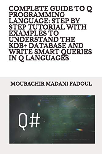 Have you always wanted to learn computer programming but are afraid it will be too difficult for you? Or perhaps you know other programming languages but are interested in learning q programming language fast?This book is for you.You no longer have to waste your money and time trying to learn q programming language from boring books that are 600 pages long, expensive online courses or complicated q programming language tutorials that just leave you more confused and frustrated.What this book offers...q Programming language using Kdb+ database for Beginners and professionals.Complex concepts are broken down into simple steps to ensure that you can easily master the q programming language even if you have never coded before.Carefully Chosen q programming language Examples using Kdb+ databaseExamples are carefully chosen to illustrate all concepts. In addition, the output for all examples are provided immediately so you do not have to wait till you have access to your computer to test the examples.Careful selection of topicsTopics are carefully selected to give you a broad exposure q programming language, while not overwhelming you with information overload. These topics include object-oriented programming concepts, error handling techniques, file handling techniques and more. Such that you are always up to date with the latest advancement in the q programming language.Learn the q programming language FastHow is this book different...The best way to learn q programming language is by doing. This book includes unique examples at the end of the book that requires the application of all the concepts taught previously. Working through the examples will not only give you an immense sense of achievement, it will also help you retain the knowledge and master the language.What you'll learn: Table of ContentsChapter 1. Introduction to KDB+Chapter 2. Q Programming LanguageChapter 3. Q Language - TableChapter 4. Q LANGUAGE - FUNCTIONSChapter 5. Q Language - QueriesChapter 6. Q Language - Inter-Process CommunicationChapter 7. Q Language - AttributesChapter 8. Q Language - Tables on DiskChapter 9. ConclusionABOUT THE AUTHOROTHER BOOKS BY MOUBACHIR MADANI FADOUL...and so much more....Finally, you'll be guided through a hands-on tutorial that requires the application of all the topics covered.Click the BUY button now and download the book now to start learning q programming language. Learn it fast and learn it well.This tutorial guide has been prepared for beginners and professionals to help them in understanding the basic concepts related to q programming language using Kdb+ database. The book tutorial gives you enough understanding on q programming language from where you can take yourself to a higher level of expertise.