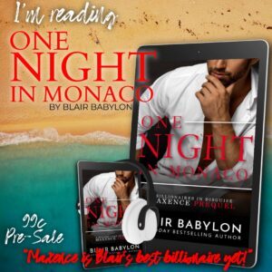 This is One Night In Monaco, A Billionaires In Disguise; Maxence Prequel written by the amazing Blair Babylon! This book has been a long awaited one! I’m so excited to finally dig into the man of mystery Maxence Grimaldi!! He has been in this series as friends of Casimir and Arthur, his sexy as h@ll friends from boarding school. Ms Babylon knows how to string you along and NEED to know about her wonderful characters. She never fails to amaze me with the amount of details and little flashes of other friends that she sprinkled throughout her books. Full of intrigue, sinister associates, mob related activity, utter indulgence of opulence and sexy sexy times! Hurry up with the next one Ms Babylon! I’m about to burst over here!!