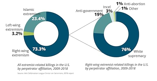 One of the more disturbing take-aways is that White Nationalist extremists do as much, if not more, damage (loss of life, property damage, stress on the system and individuals) in this country than their American-born Militant Islamist counterparts, but, due to the fact that there is, technically, no federal ordinance against domestic terrorists, especially if they are white or Christian, very few are punished as severely as terrorists who happen to be Muslim. (Another win for white privilege! Yay!)
