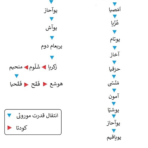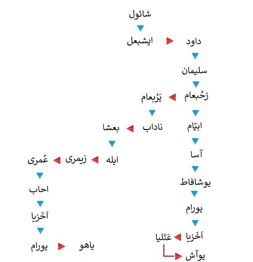 ۲- نگاهی کلی به کتابهای سموئیل و پادشاهان: پادشاهی اسرائیل همچون تمام پادشاهیهای متزلزل معاصرش، دستخوش کودتاهای دورهای بوده است. هر دو سه نسل یکی از فرماندهان شورش میکند، تخت سلطنت را تصرف میکند و سلسلهای کوتاه مدت برقرار میکند تا دو سه نسل بعد دوباره فرماندهی دیگر شورش کند و تخت را تصرف کند. داود تنها یکی از این کودتاکنندگان است. تخت را از شائول میگیرد و خودش و پسرش مدتی حکومت میکنند تا فرمانده دیگری (یربعام) تخت را از ایشان میرباید. با این تفاوت که نسل داود سرزمین کماهمیتتر جنوبی (یهودا) را حفظ میکنند.