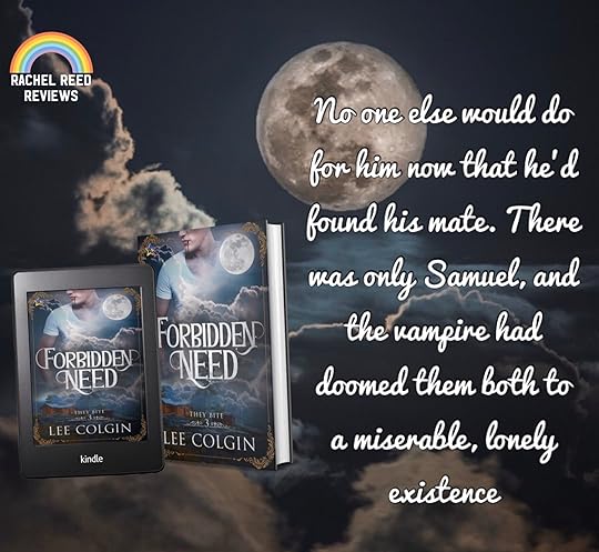 Forbidden Need by Lee Colgin is the third book in the They Bite series. This is a paranormal MM romance with shifters, vampires, and fated mates. The story is qell written and interesting, we get glimpses of the past to give us a fuller understanding of what lead tge characters to become the men they are in the present day. Samuel and Rudy are great characters tgat I loved seeing together.... they have obstacles to overcome but their vonnection is powerful and I rooted for them from tge start. I