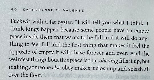 “I hope everyone I meet is as happy as I am because Garbagetown is the best possible place in all of space and time.”Imagine the infamous Great Pacific Garbage Patch as a solid and organized mass of all kinds of refuse emblematic of human follies, becoming the only tangible patch of solid “ground” in the drowned world, a place where “people could live on a patch of garbage in the Pacific Ocean the size of the place that used to be called Texas” — and allowing Valente to take that image and go full Valente on it.