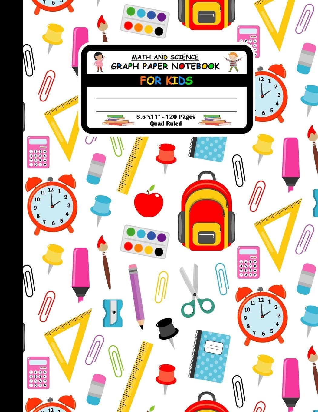 Math And Science Graph Paper Notebook For Kids: Square Grid or Quad Ruled Paper. Large Size Notebook With 120 Pages, 1/2 Inch Squares. School Supplies Pattern Cover.