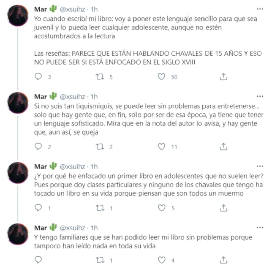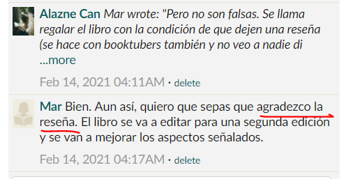 PD: Sé que es algo que no ocurre muchas veces, pero Goodreads debería permitir resetear la ficha de los libros que sufren un ataque así porque, al fin y al cabo, las reseñas de 5 estrellas que "encarga" la autora a sus seguidores para contrarrestar las de 1 estrellas siguen siendo *reseñas falsas*. La imagen que recibirá el lector que se encuentre de casualidad con la ficha de este libro va a ser la de "o lo amas, o lo odias", porque básicamente eso es lo único que tiene este libro. Reseñas falsas de ambos opuestos.