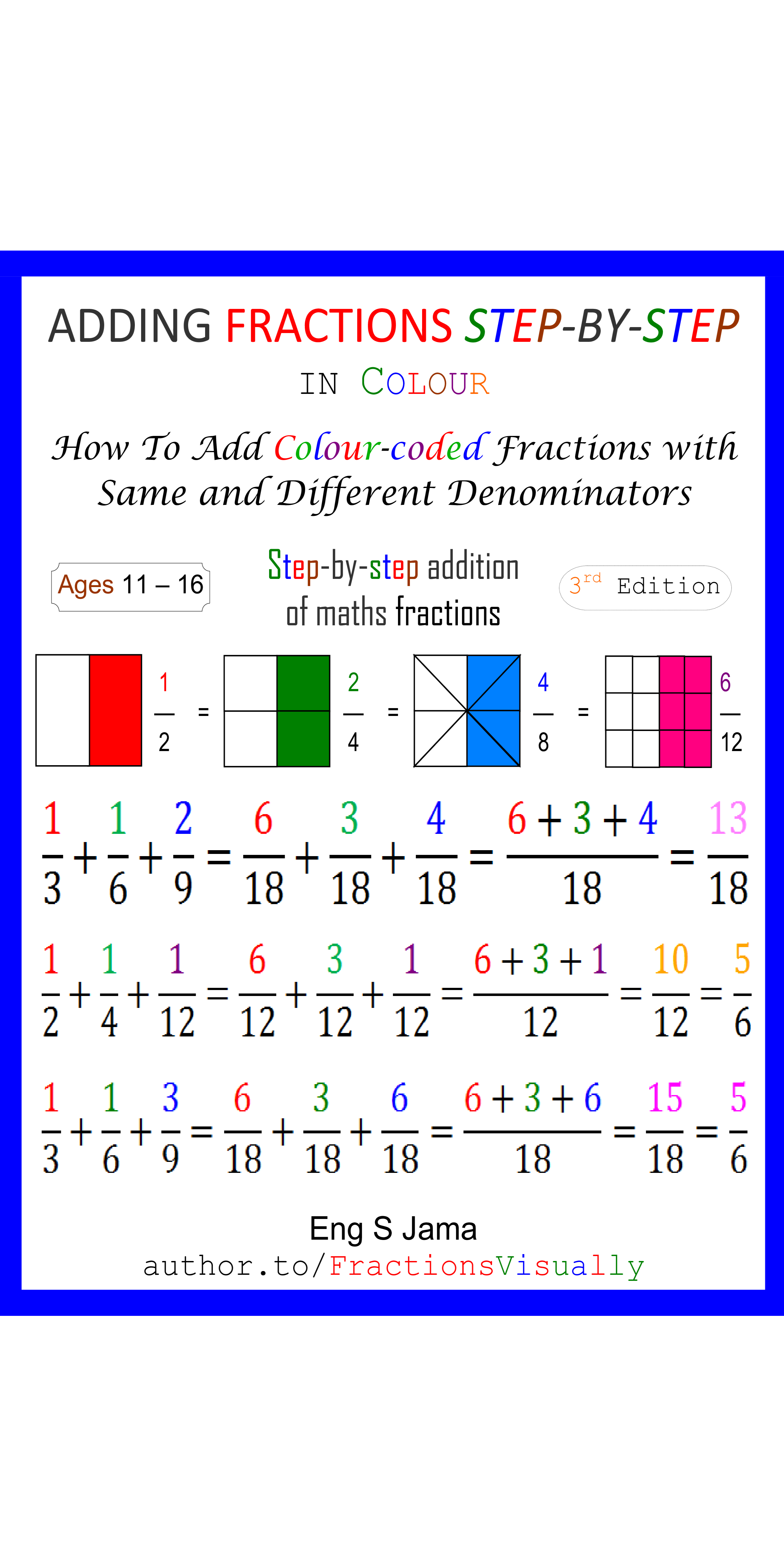 ADDING FRACTIONS STEP-BY-STEP is for students and older learners struggling with adding fractions. Ages 11-16, Grades 6th-10th grade or Year group 7-11 in secondary education (middle, senior and high schools). mybook.to/B-3 mybook.to/B3-C mybook.to/WB3 mybook.to/WB3-C