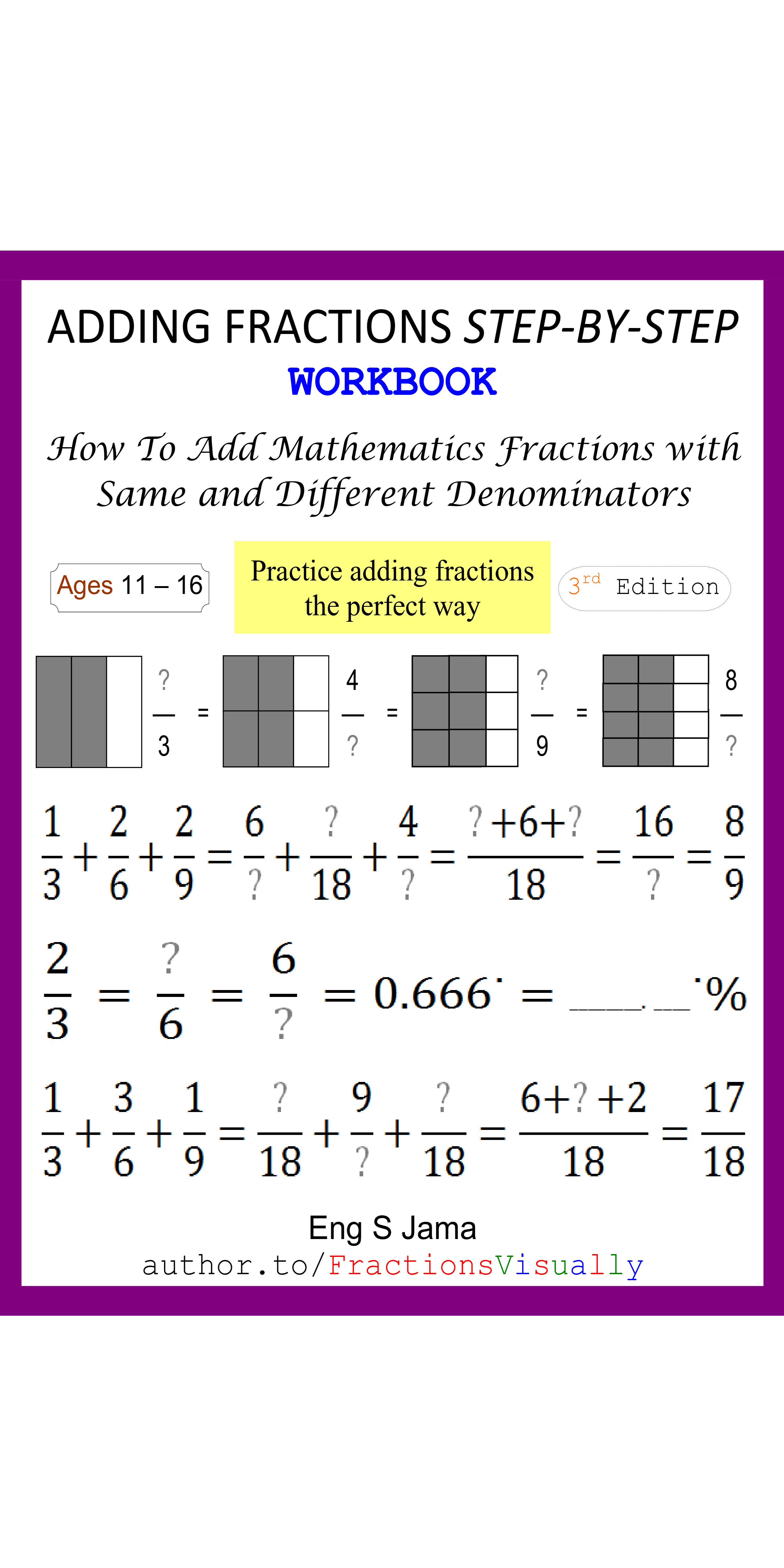 Also available: • Paperback: mybook.to/B-3 • Colour paperback: mybook.to/B3-C • Colour workbook: mybook.to/WB3-C A perfect gift for a loved learner, students with special educational needs, or someone who enjoys step-by-step instructions (plus some visual guide) to master adding maths fractions.