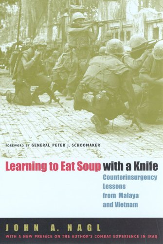 I don't generally read books sympathetic to the US military, but I have to concede that "Learning to Eat Soup With a Knife" by John A. Nagle is an intriguing and thoughtful reflection on counterinsurgency despite its biases towards American empire.