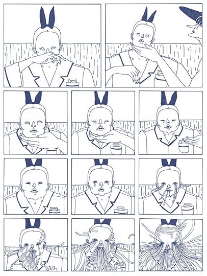 Baby Blue is the most recent Swedish import from publisher Fantagraphics, originally published by Galagos a few years prior. Written and drawn by Bim Eriksson, Baby Blue details a dystopian near-future in Sweden where a fascistic government has outlawed sadness. Presented through the perspective of the aimless young twenties Betty Pott, the story quickly outlines just how damned Betty and many in her generation truly are by this autocratic regime. It doesn't take long for Betty to be picked up by the government - the catalyst being a mixtape of emo songs that manifests into a public outburst of grief. The absurdity in the premise allows for some decent bouts of humor though, so this is far from the typical fascism-tinted narratives that tend to come off as oppressive. Eriksson's art accentuates the comedy as well, with stilted action and peculiar character designs coming off as being funny just as much as it can be disconcerting.