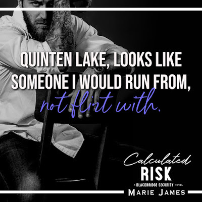 4.25 stars--CALCULATED RISK is the fifth instalment in Marie James’ contemporary, adult BLACKBRIDGE SECURITY erotic, romantic suspense series focusing on the men and women who work for Blackbridge Security. This is thirty-five year old, crisis management consultant/fixer Quinten Lake,and twenty-nine year old accountant Hayden Prescott’s story line. CALCULATED RISK can be read as a stand alone without any difficulty. Any important information from the previous story lines is revealed where necessary.