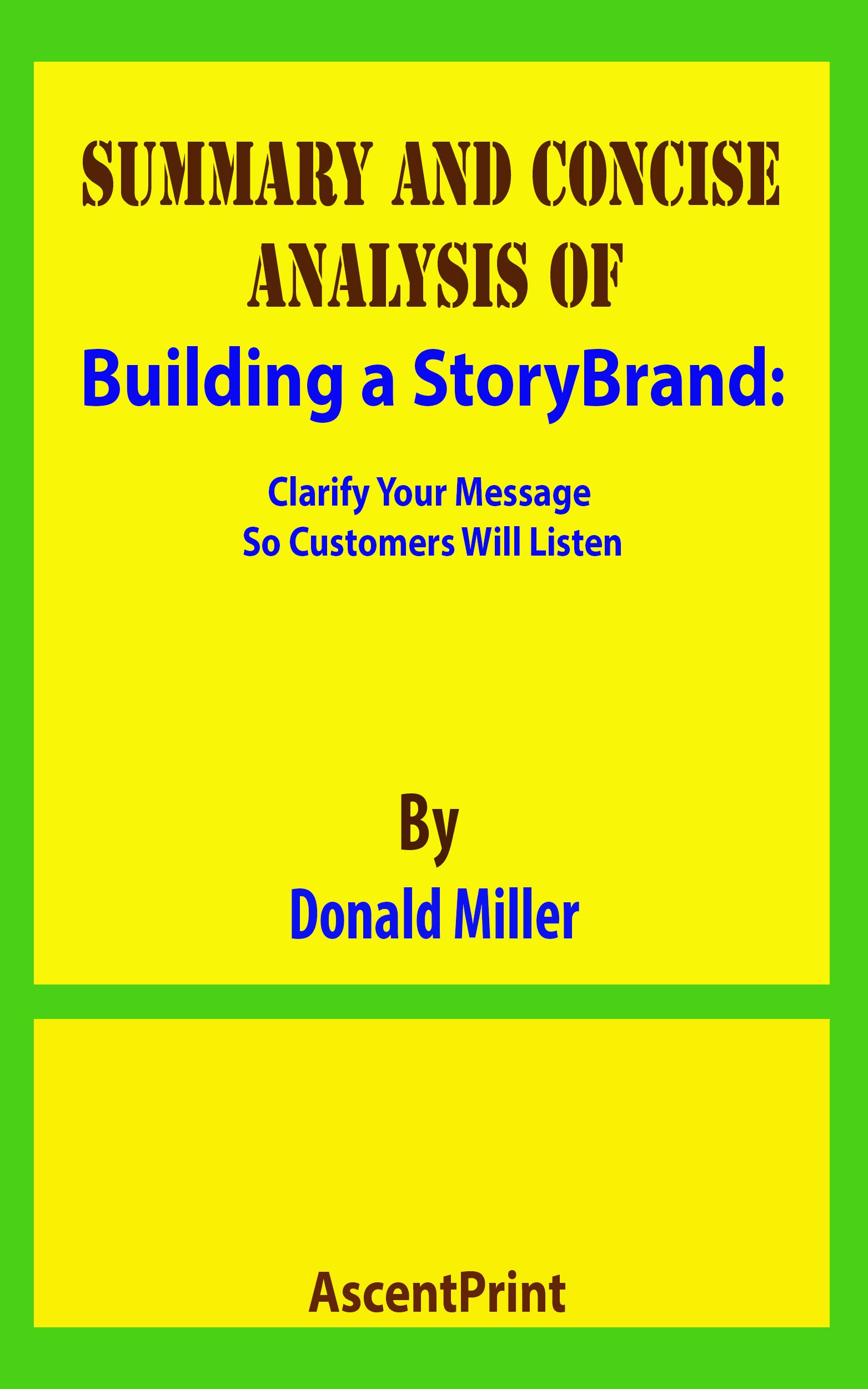 Building a storybrand Donald Miller (2017) is a practical guide to effectively marketing your company or product. By showing the power of a seven-part story-telling framework, these blinks help you and your company create a clear message that no customer will ignore. DISCLAIMER!!! This book is a SUMMARY. It's meant to be a companion, not a replacement, to the original book. Please note that this summary is not authorized licensed, approved, or endorsed by the author or publisher of the main book. The author of this summary is wholly responsible for the content of this summary and is not associated with the original author or publisher of the main book. If you'd like to purchase the original book, kindly search for the title in the search box.