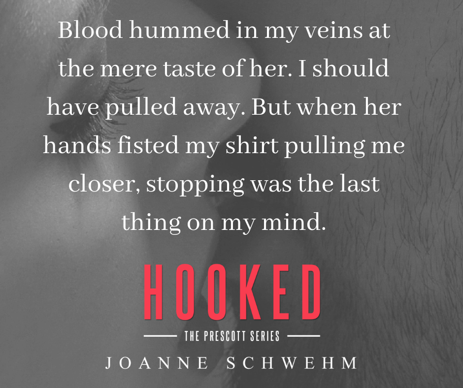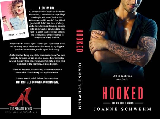 Hooked is appropriately titled because a few pages in and you will be HOOKED on the sexy, tatted chef's story that rounds out this heartwarming series of stand-alone romances. Joanne Schwehm gave hints, little nuggets on how hot Josh Prescott was in previous books. Trust me, as hot as you expected him to be, well, go ahead and crank up the burner because he's that much hotter! When he meets Gia, he had no idea what would hit him both literally and figuratively. I won't say any more, as you need to read Hooked. In fact if you haven't yet, you need to go back to the begging and start with Incumbent and then move right through each sibling's book... all five of them. Gah, I'm not crying, you're crying! Book 5 is the end??? I'm starting to bug Ms. Schwehm for more because I feel like the Prescott's are family. I've laughed with them, cried with them, and I'm going to miss them! #JoshisAMs #DaneisAMs #DrakeisAMs #JackisAMs #SorryNotSorry #AlphaBetaPerks :-)