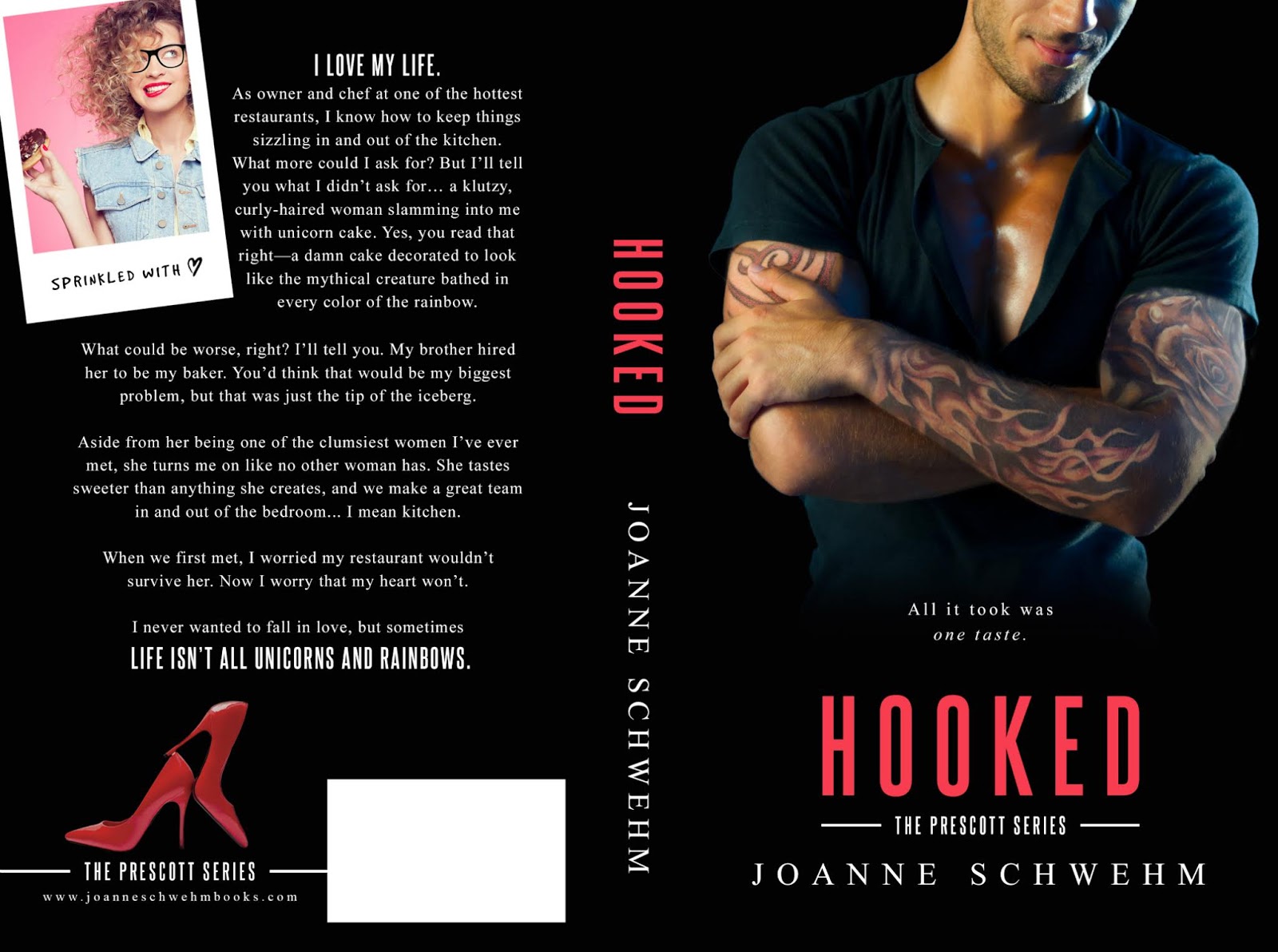 Hooked will do just that to you the reader once you meet Josh and Gia ! Josh Prescott is the youngest of the family and making his way as a reknowned chef. He is talented. smart and it doesn't hurt that he is tall, tatted and oh so sexy! Gia is a beautiful, clutzy pastry chef/baker that is give the chance to show off her talent on morning TV. When these two collide .......no literally no one is left with out a bit of unicorn cake on their face! The connection is instant but neither is really sure if it is there ?? They are thrown together as a perfect team and soon realize that besides the behind the scenes as the food dynamic duo it could be so much more . They have a slow sexy funny awkward burn and I Loved it !!I was also so excited to once again be thrown into the Prescott world and fell in love with all of them once again. Love this family !!! Nicely Done Joanne !!!!! ~~Michele McMullen ~~
