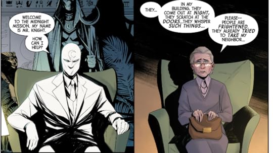After kicking all of the Avengers' asses and even cleaning Khonshu's clock, Mr. Knight puts his feet back on the ground to try and help people in the only way he knows how. Khonshu is the god of midnight travellers, and if there's one thing Moon Knight is good at, it's protecting people from things that go bump in the night.